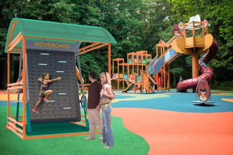 MOVEBOARD в антивандальном исполнении из нержавеющей стали со специальным противоосадковым навесом даёт возможность заниматься оздоровительным скалолазанием рядом с вашим домом и популизировать здоровый образ жизни в вашем городе. Его можно установить на время проведения развлекательных мероприятий и дней города. Event агенства, организаторы корпоративных праздников и выездов на природу используют тренажёр для проведения конкурсов и соревнований между сотрудниками компании.